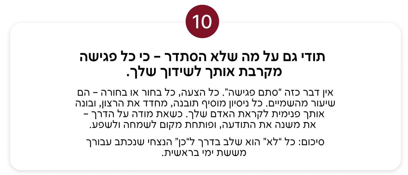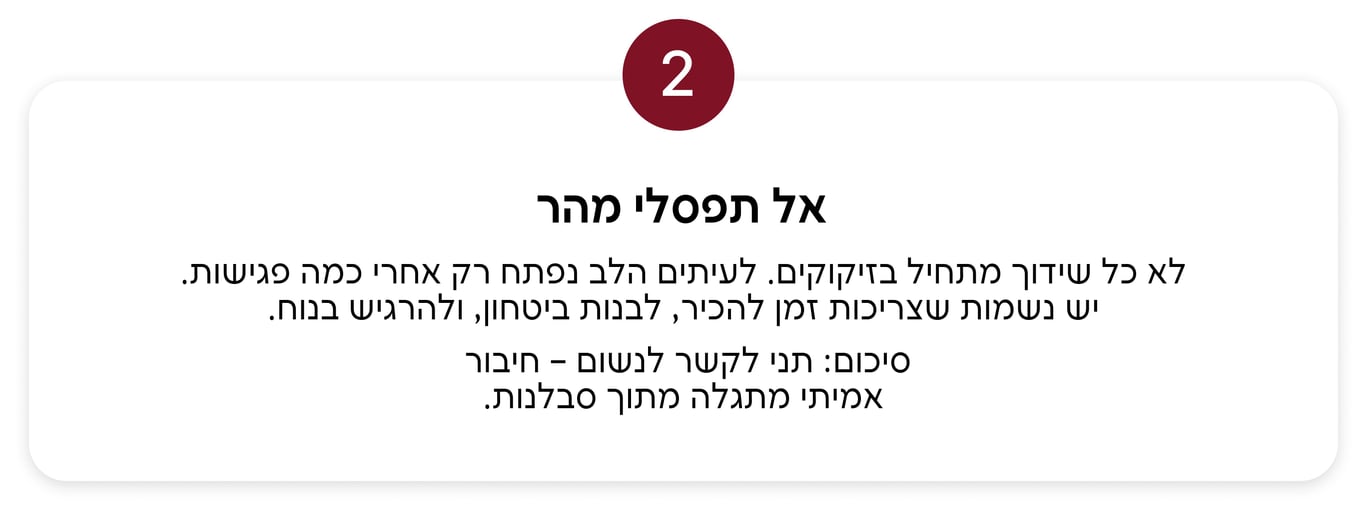 לפגישה ראשונה מגיעים בכוונה, ביישוב הדעת ועם לב פתוח.
