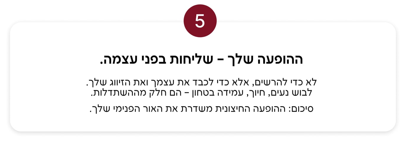 ✔️ מגיעים מטופחים ומסודרים – כאילו הולכים לאירוע חשוב